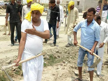 गाजीपुर: जब मंत्रीजी अपने हाथों में थामे फावड़ा