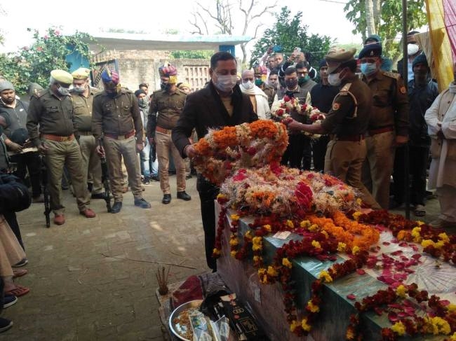 पुलिस के जवानों ने शस्त्र सलामी दी। दोपहर 11:30 बजे उनकी शवयात्रा शुरू हुई और डेढ़ किलोमीटर दूर दक्षिण गंगा घाट पर पहुंची। बड़े पुत्र मनोज कुमार ने उन्हें मुखाग्नि दी। परिजनों ने की मांग